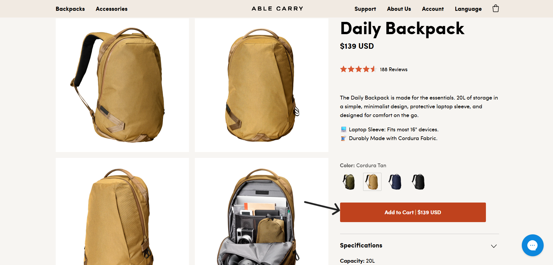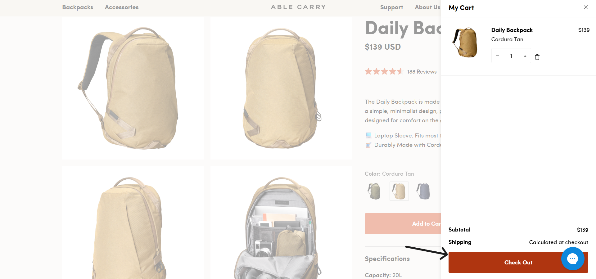 - Select the Able Carry bagpack that you would like to buy