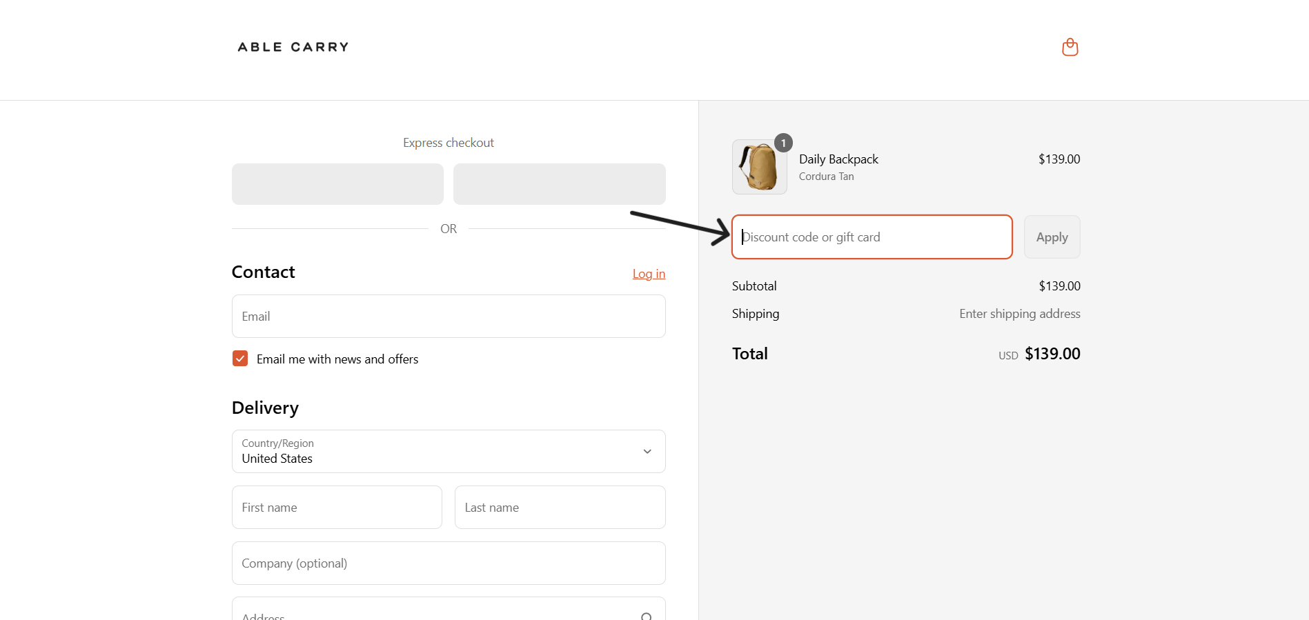 Here is step by step guide how to order your Able Carry bagpack and avail the great discount -