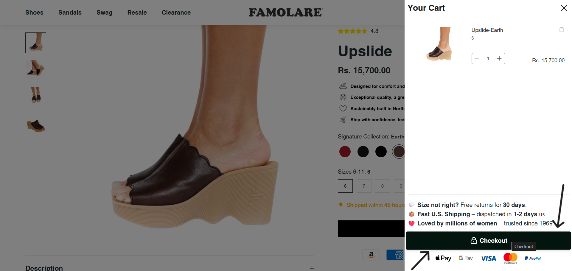 - Select the Famolare footwear that you would like to buy and click on Add To Cart the footwear will be added in your cart.