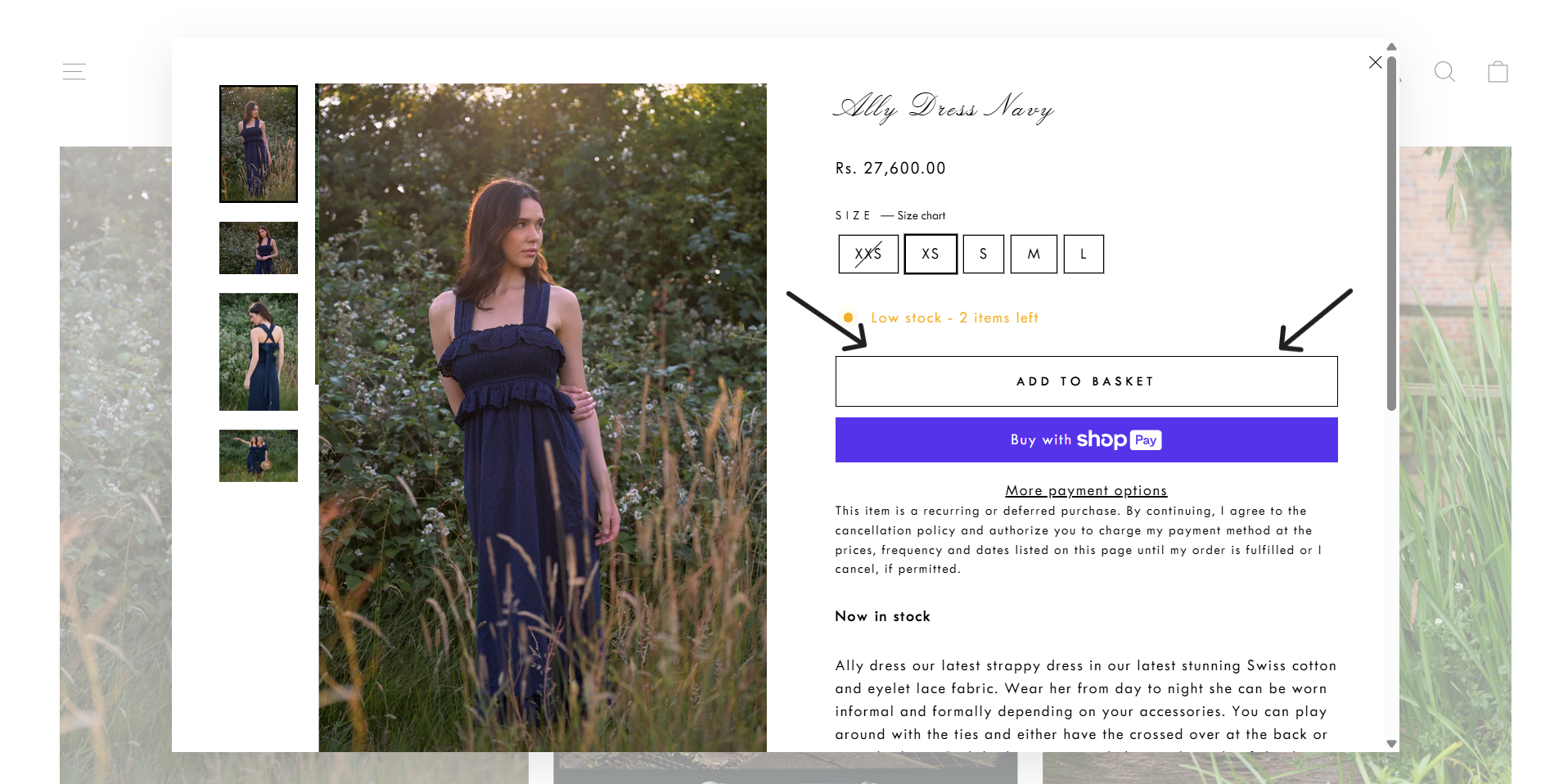 - Select the Neve and Noor dress that you would like to buy and click on Add To basket the dress will be added in your cart.